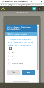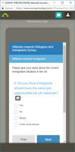 - Survey Monkey Questionnaire: Attitudes towards Immigration Survey