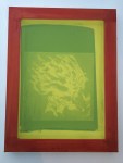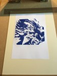 I decided to do a three colour screen print using two colours of ink, the third colour being produced by the layering of one colour ink over the other. I went to the Regional Print Centre to expose my positives onto my screens so that I could print at home.