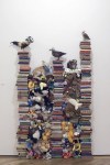 In the 1990s, Messager began to work with soft toys, a replacement for the real taxidermy birds she used in the 1970s. In Fables and Tales, 1991, the soft creatures are cruelly squeezed between piles of books.