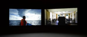 … The second work, Auto Da Fé (2016) or Acts Of Faith, is a diptych that looks at migration through the lens of religious persecution and continues Akomfrah’s longstanding interest in the transmutations brought about by relocation. Presented as a lyrical period drama, the film lays bare colonial and post-colonial experience through its documentation of eight historical migrations over the last 400 years, starting with the little known 1654 fleeing of Sephardic Jews from Catholic Brazil to Barbados and ending with present day migrations from Hombori, Mali and Mosul, Iraq. As the film develops, viewers are presented with multiple tales of displaced populations and attendant feelings of dislocation and alienation. The work is inspired by the writings of George Lamming, who wrote about the quotidian nature of 20th century life in Barbados and migrants’ hopes for a better future, only to find harsher conditions when arriving elsewhere. The work was filmed on location in Barbados, but the landscape is deliberately anonymous, reflecting the universal nature of these stories.
