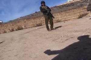 A year after Jacir’s expeditions around Israel and Palestine for Where We Come From, while she was living in Ramallah and teaching at Birzeit University, Israel Defense Force (IDF) soldiers caught her filming her feet near the checkpoint near the town of Surda, on the way to Birzeit. At the Surda checkpoint, she and all Palestinians were required to get out of their vehicles and walk two kilometers on the road before picking up another ride to continue their journey. The IDF patrol detained the artist at gunpoint for several hours in the rain and confiscated her tape. In response, Jacir went home and cut a hole in her shoulder bag and spent the next eight days recording her commute through the checkpoint from Ramallah to Birzeit University. From the swinging shoulder bag, the camera records a muddied road lined with tanks and armored personnel carriers. Figures huddled in the rain press through concrete barriers and avoid watchful soldiers fingering their M-16s. On sunny days, there are glimpses of Jacir’s shadow and the bag that conceals the camera. Shown in an exhibition context as a two-channel installation with a 130-minute compilation of the raw footage projected onto a large screen and a 30-minute montage of select moments from the footage shown on a monitor, Crossing Surda: a record of going to and from work (2002) doesn’t reveal military secrets. But on Jacir’s part, repeatedly filming the checkpoint was a risky act of low-budget reconnaissance and the resulting footage portrays the far-reaching impositions of the occupation on Palestinian society. Correspondingly, the work is much closer to pure documentary—the establishment of facts on the ground—and, in her act of defiance, offers a simple but effective way around them. Despite its tenor of latent outrage, Crossing Surdaembodies an optimism about the potential for documentary, a faith that Edward Said expressed shortly before his death in September 2003: “Whenever the facts are made known, there is immediate recognition and an expression of the most profound solidarity with the justice of the Palestinian cause and the valiant struggle by the Palestinian people on its behalf.”