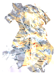 Having finished my 20:20 Print Exchange piece I have decided to use my left over prints to inform this project. In the first instance though I have done some digital layering with the 20:20 print, my collages of Scotland and Wales and also my ink maps previously created.