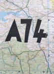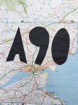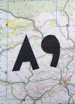 I continued the theme of the journey creating stencils of the road numbers that I travel on between Scotland and Wales.