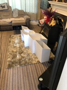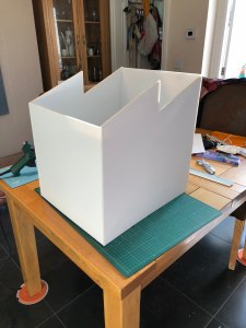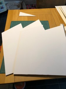 Having put this task off for many weeks I finally decided to face my fears of working with foam board and tackle this. I did the work over two days, firstly building the model itself and secondly dressing the model with the artworks. I finally learned to use light pressure to cut the foam board and have more success with my cutting.