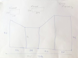 I then added some brief workings out of my own to help with my preparation. Overall I would say my model is “roughly to scale”. The angle of the roof I estimated using a photograph.
