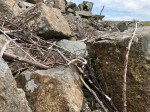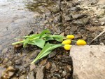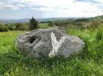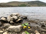 My Final Site Visit – somewhat sad that I’m not going to be up here so often. What is interesting though is that on each trip something has happened of significance to the project. On this occasion, we found yellow tulips placed at the spot where I had recorded the original photography using the doll and flowers. Also we discovered the Free Wales Army slogans written on the rocks at the dam. These were painted for the rally that took place in 2013 (https://www.youtube.com/watch?v=_YrgWfDzxdk). At the top of the reservoir near to the chapel and the disused building rubble – I came across an extremely rust hook – never seen anything like this at the site. Whilst we were collecting twigs we also came across more building wood, one piece with a hinge still attached.