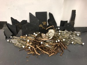 I decided to place the items I’ve collected so far into my studio space to begin to get an idea of what I have available to use.