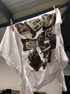 I also prepared another shirt to be used when I go to Llyn Celyn for the site visit to take more photographs. I have two more photographs in mind to use as part of the piece. One, a landscape of Llyn Celyn with Washing in the foreground and another re-enacting a photograph from the 1960’s during a protest at Llyn Celyn.