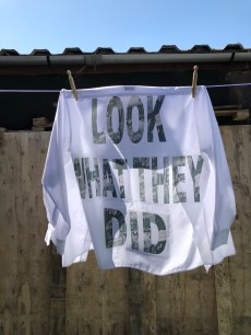 I also prepared another shirt to be used when I go to Llyn Celyn for the site visit to take more photographs. I have two more photographs in mind to use as part of the piece. One, a landscape of Llyn Celyn with Washing in the foreground and another re-enacting a photograph from the 1960’s during a protest at Llyn Celyn.