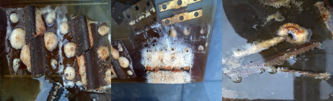 I’ve made two solution baths and placed a door handle in a jam jar.