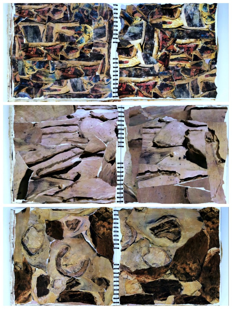 An extension of each experiment, producing the sketchbook pages serves to give me space to step back from the doing and reflect on the process and experiment further. This helps me to see more clearly the direction of the work moving forward.